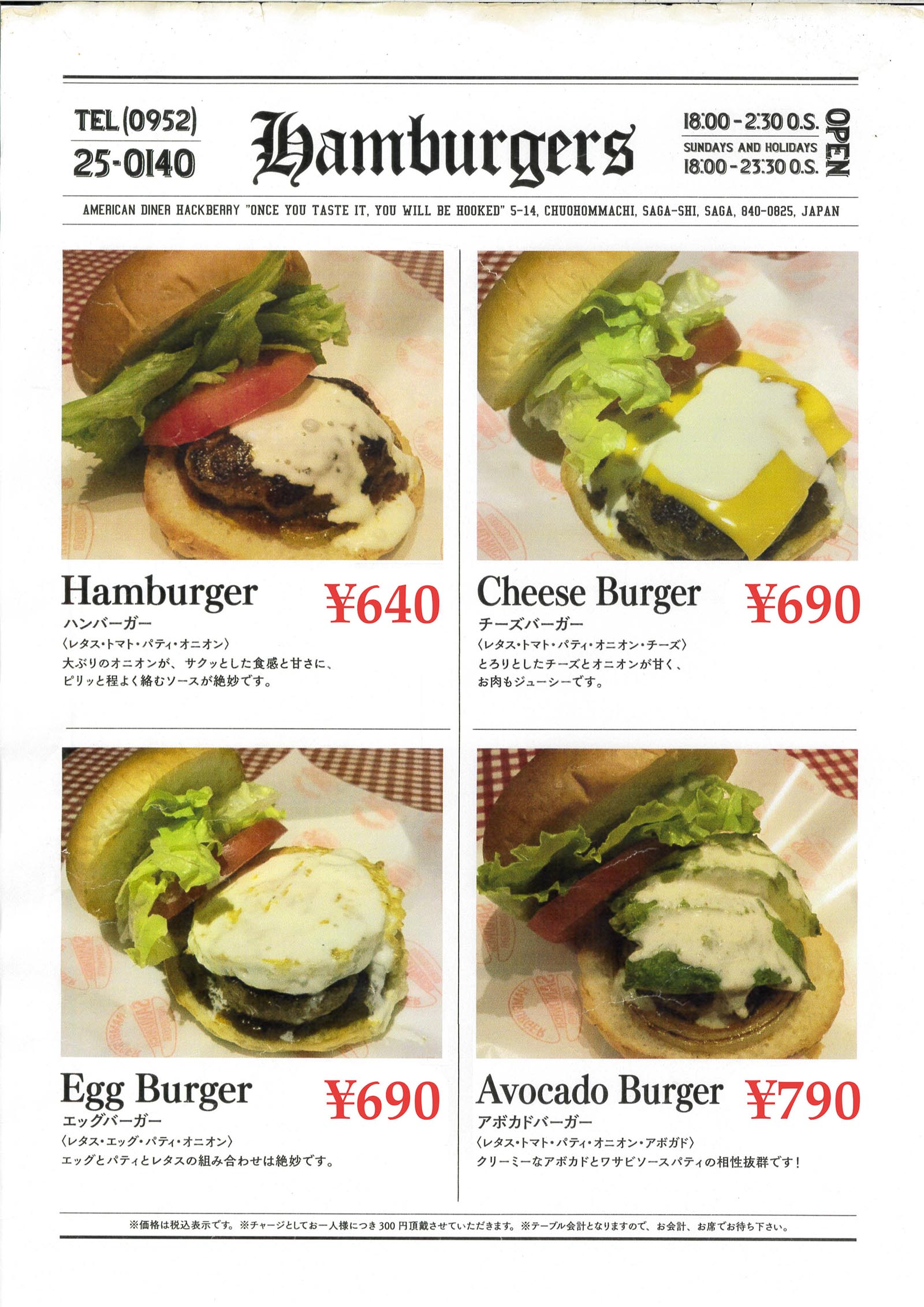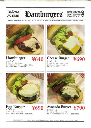 - ハンバーガー、ステーキ、バー [Menu] Burgers, bars, cafes