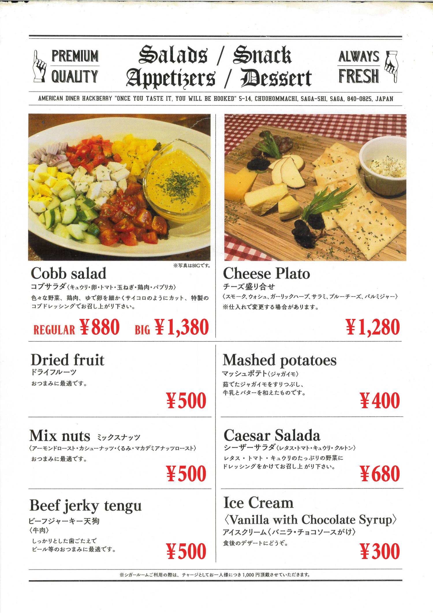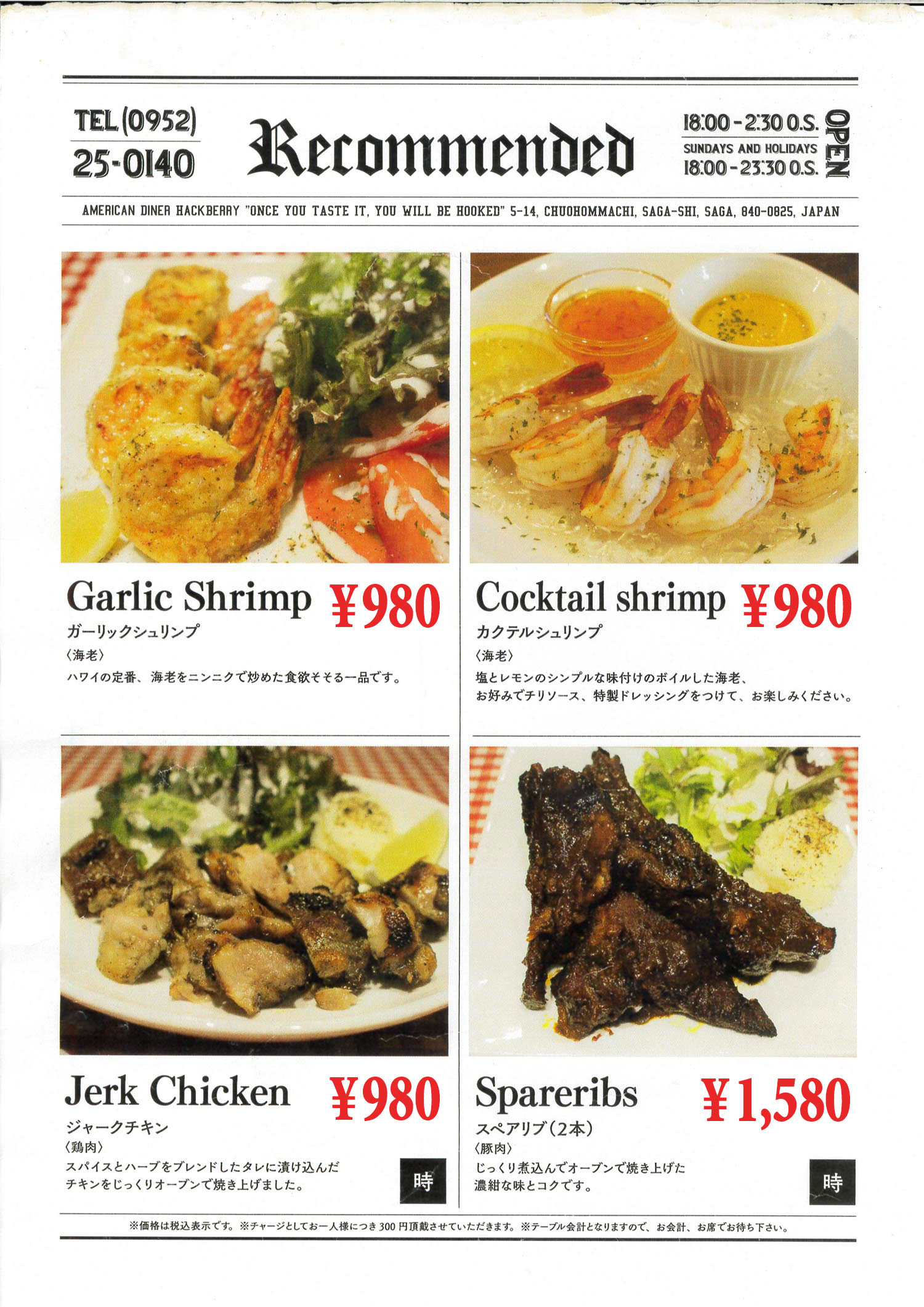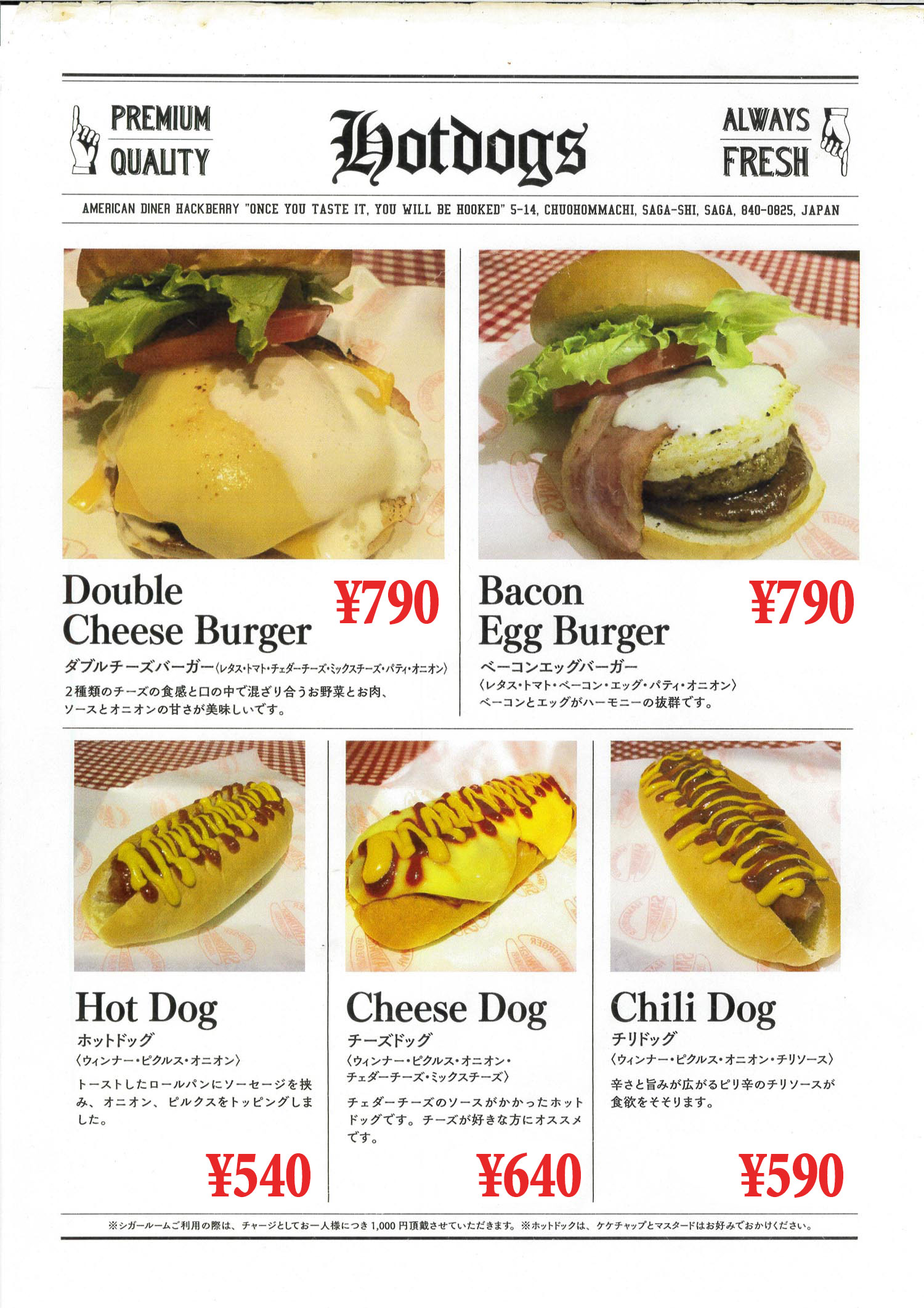 - カード可(JCB、AMEX、Diners、etc…) Card accepted(JCB、AMEX、Diners、etc…)